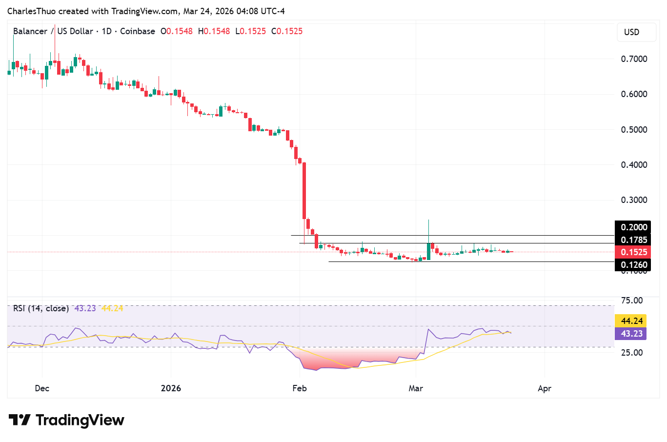 At press time, the BAL token was currently trading near $0.15, just slightly above its recent lows.