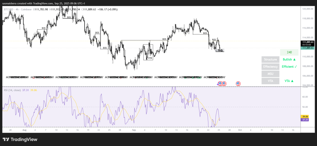 At the moment, BTC is trading at $111,793. If the bearish trend continues, BTC could drop below the $110k support level and retest the $107k region for the first time since August 31.
