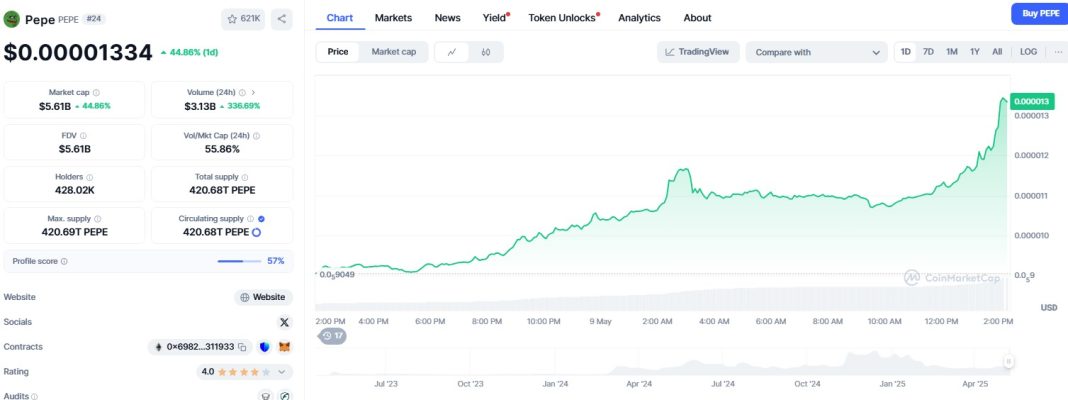 The post Pepe price jumps 40% amid memecoin rally driven by Bitcoin surge appeared first on CoinJournal.